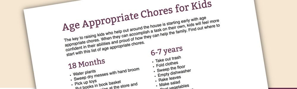 The key to raising kids who help out around the house is starting early with age appropriate chores. Find out where to start with this free list!